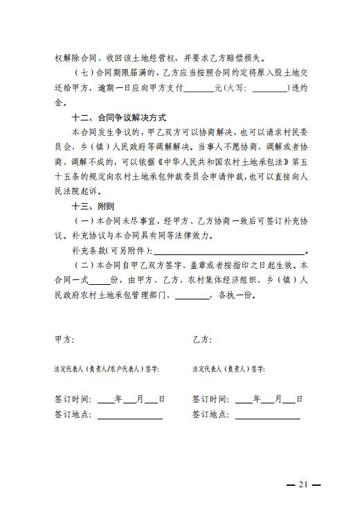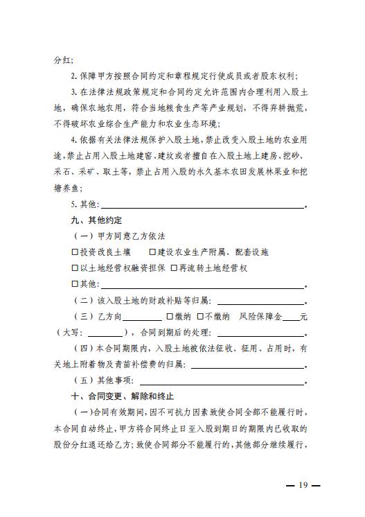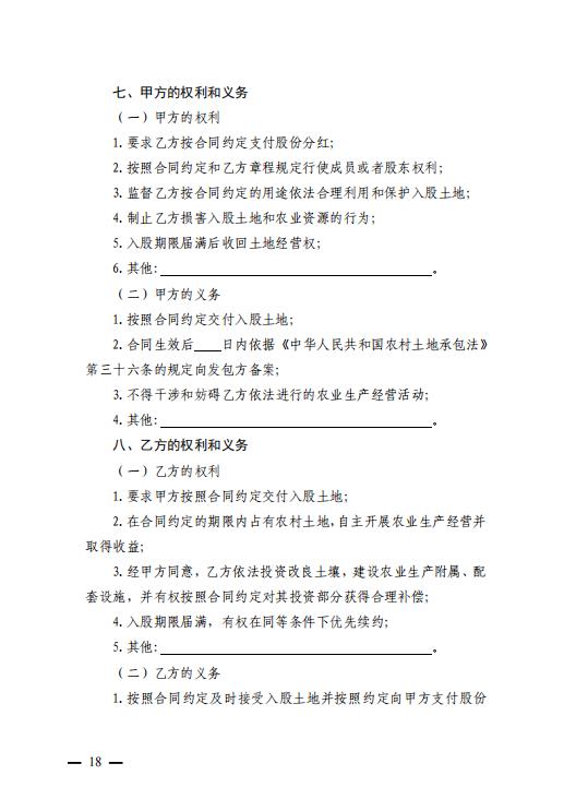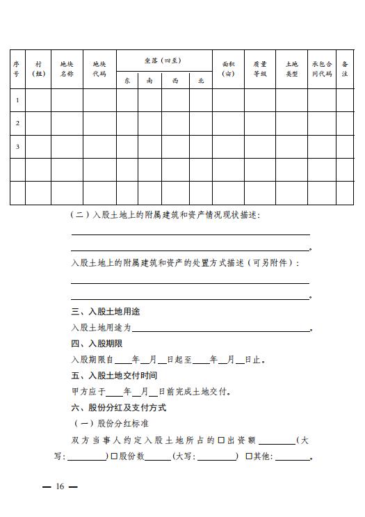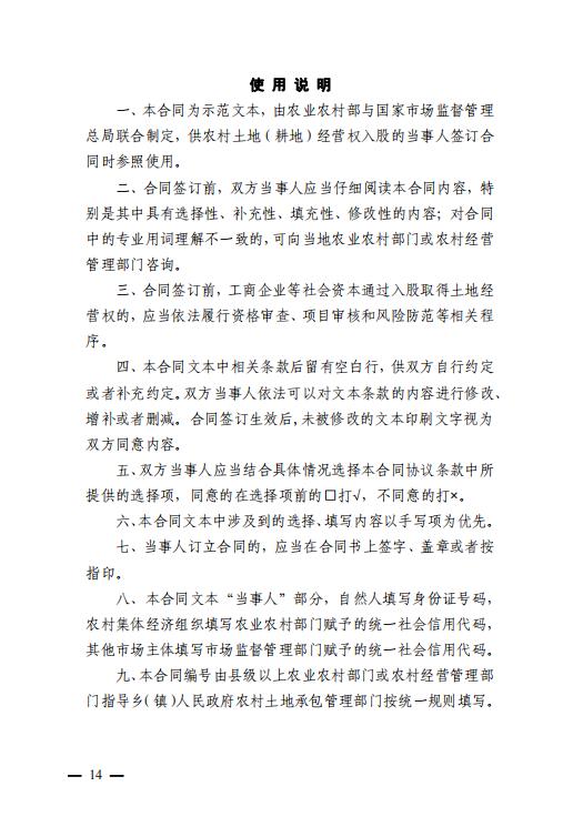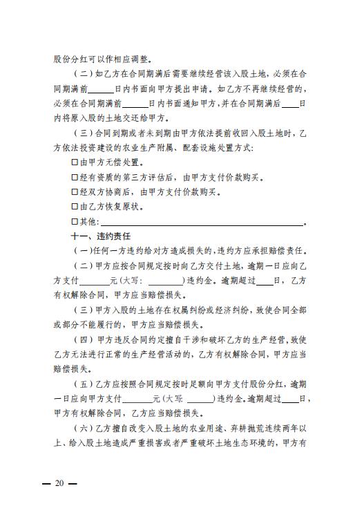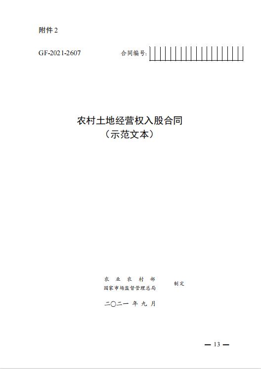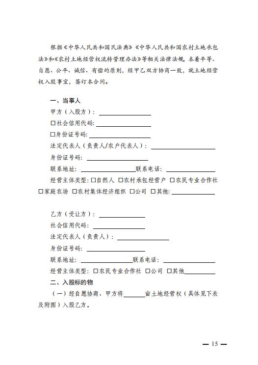 农村土地经营权入股合同 (示范文本)